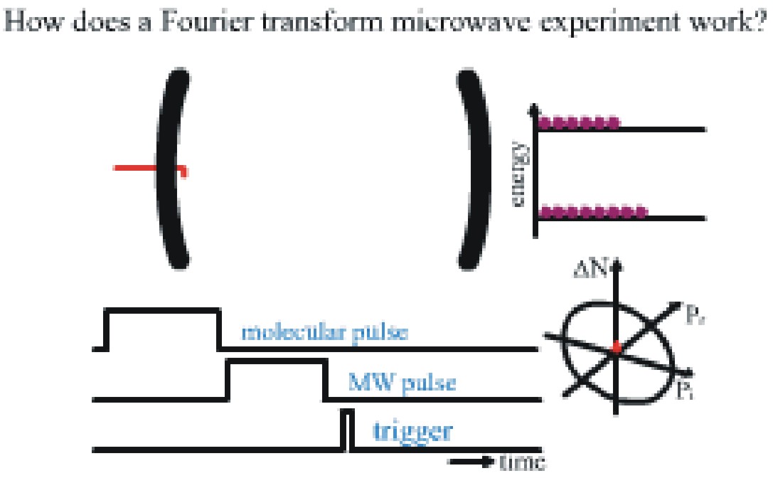 The principle of FTMW spectroscopy is thus very similar to that of pulsed nuclear magnetic resonace (NMR) spectroscopy which is also based on the excitation of a molecular ensemble with a pulse of coherent radiation and the subsequent detection of the molecular emission signal.