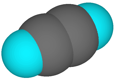 The following images show the molecule in various renderings. Carbon is grey, the hydrogens are blue.