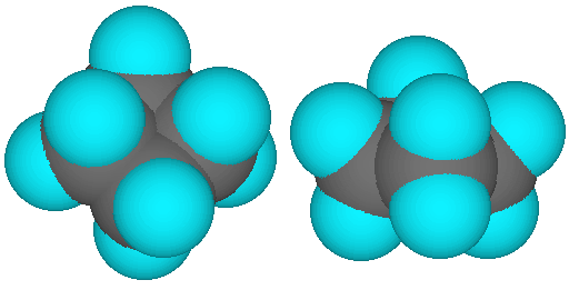 The following images show the molecule in various renderings. Carbon is grey, the hydrogens are blue.